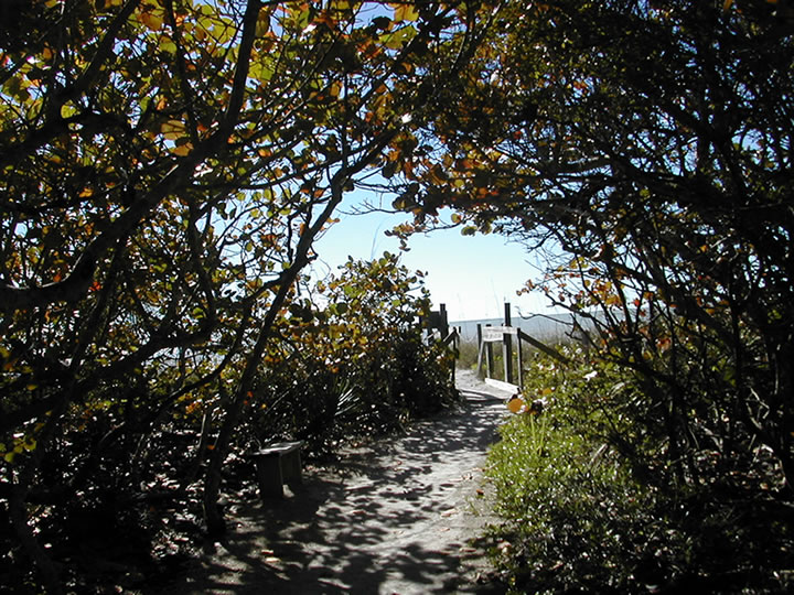 get to the Gulf Pines Beach on Sanibel Island, you walk down a beautiful
