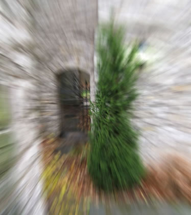 I had lunch today at the yummy Annam Cafe in Evanston, and on my way back to work I started taking pictures even though it was a little rainy out. As I was coming down the stone stairs into the garden entrance of the building, I took this picture, and in the process fell right down those stairs. The picture wasn't actually this blurry, but I thought this made it look much more dramatic. I skinned my knees and bruised up my shins pretty good in the process of falling down about four steps, but my new camera made it through with barely a scratch, and even my stockings only ripped in two little places. Thanks to everyone at work for being so nice to me and my banged up legs! Picture Taken December 10, 2004 by RCH |