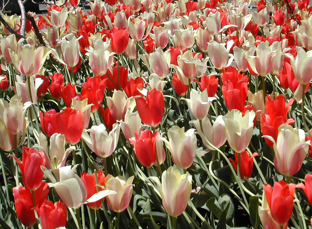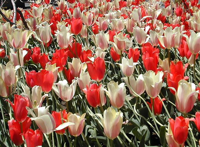 This beautiful bed of Tulips is in full bloom right at this moment, in front of the Northwestern University Library in Evanston, IL. Picture taken May 20, 2003