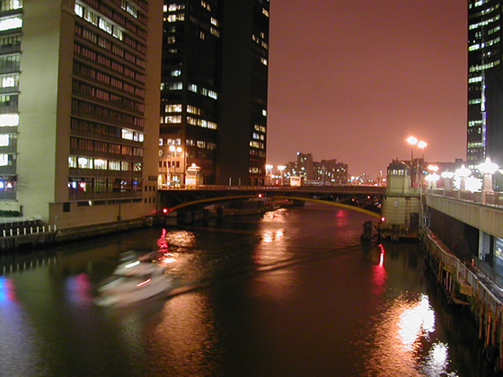 The view of the Chicago River, looking south from the Adams Street bridge. I took this on the way home from class on Wednesday night. Thanks for stopping, Heather! Picture Taken November 17, 2004 by RCH |