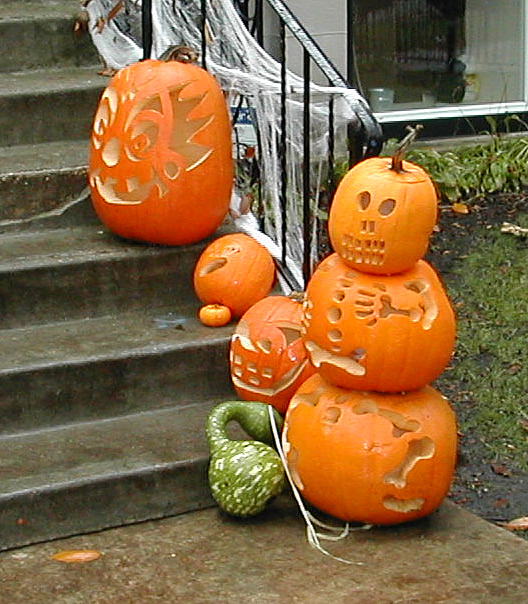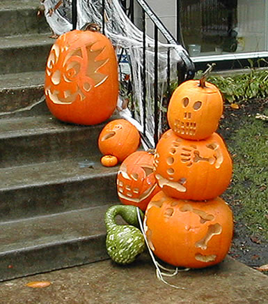 I found these on the front steps of a house down the street this morning. I'm glad they didn't take them away just because Halloween is over. Picture Taken November 4, 2004 by RCH |