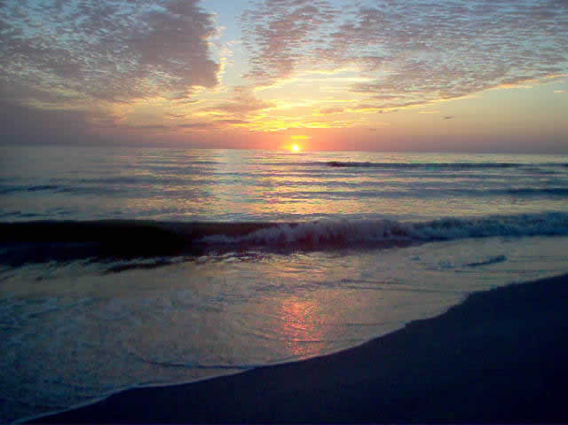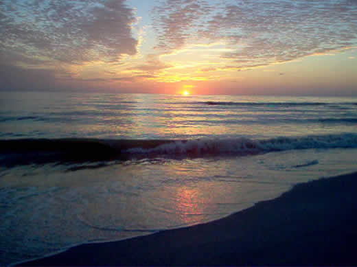 This beautiful picture of the sun setting over the Gulf of Mexico, was taken by by Mother from the white sandy beaches of Sanibel Island. Picture Taken October 2004 by Cathy Hyde |